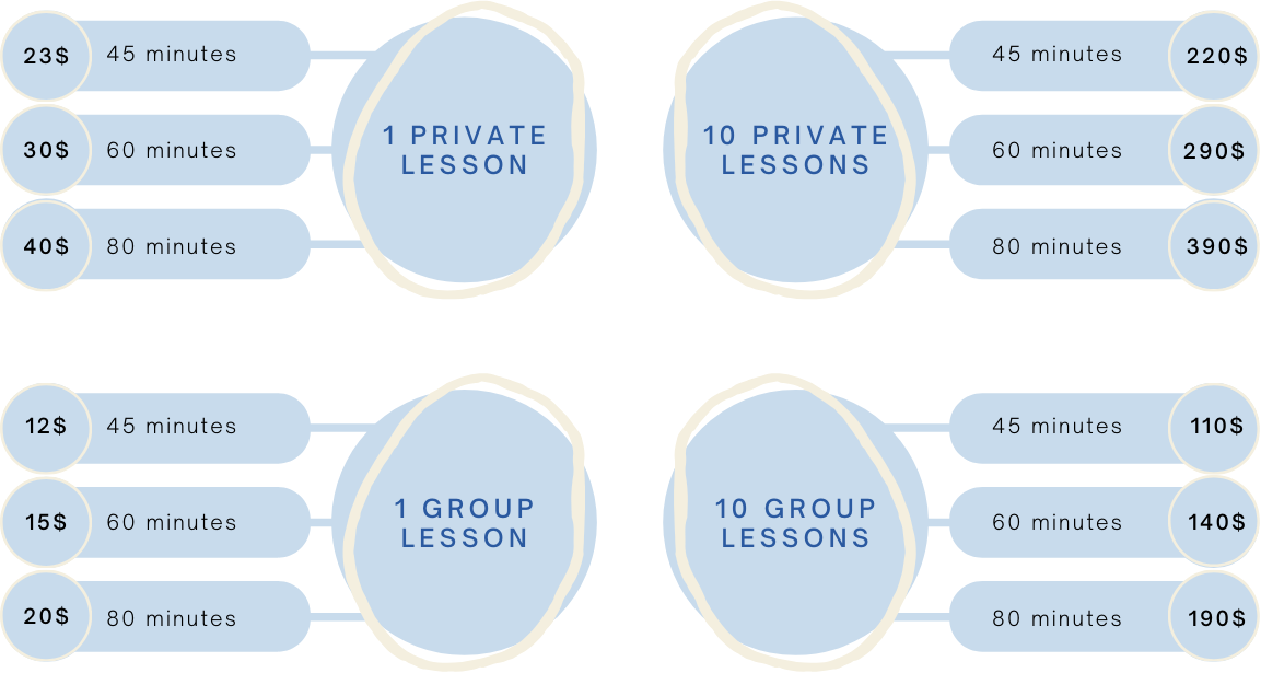 A group of 10 lessons has a discounted price. Such a discount is available throughLessons Voucher purchase in our shop. Terms and conditions apply. To get the set of 10 Group lessons with discount contact us.